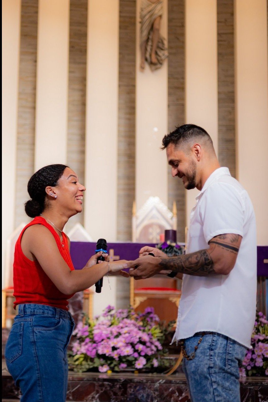 Depois de tudo o que vivemos — os encontros, as conversas, as risadas, os momentos de fé e as tantas experiências que fortaleceram nosso amor — entendemos que Deus nos chamava para algo ainda mais profundo: construir uma vida juntos.