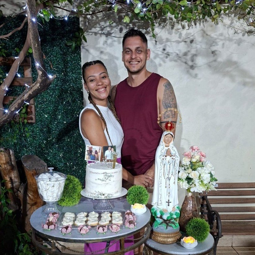Desde o início, nossa caminhada tem sido marcada pela fé. O primeiro encontro aconteceu no dia 12 de outubro, dia de Nossa Senhora Aparecida, e foi também diante da Mãe Aparecida que demos um dos passos mais importantes da nossa história: o pedido de namoro, em frente ao Santuário Nacional.
